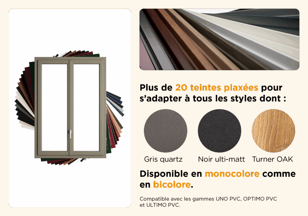 ULTIMO PVC, c’est aussi de nombreuses possibilités de personnalisation. Avec plus de 20 teintes disponibles, le PVC est un matériau polyvalent.
